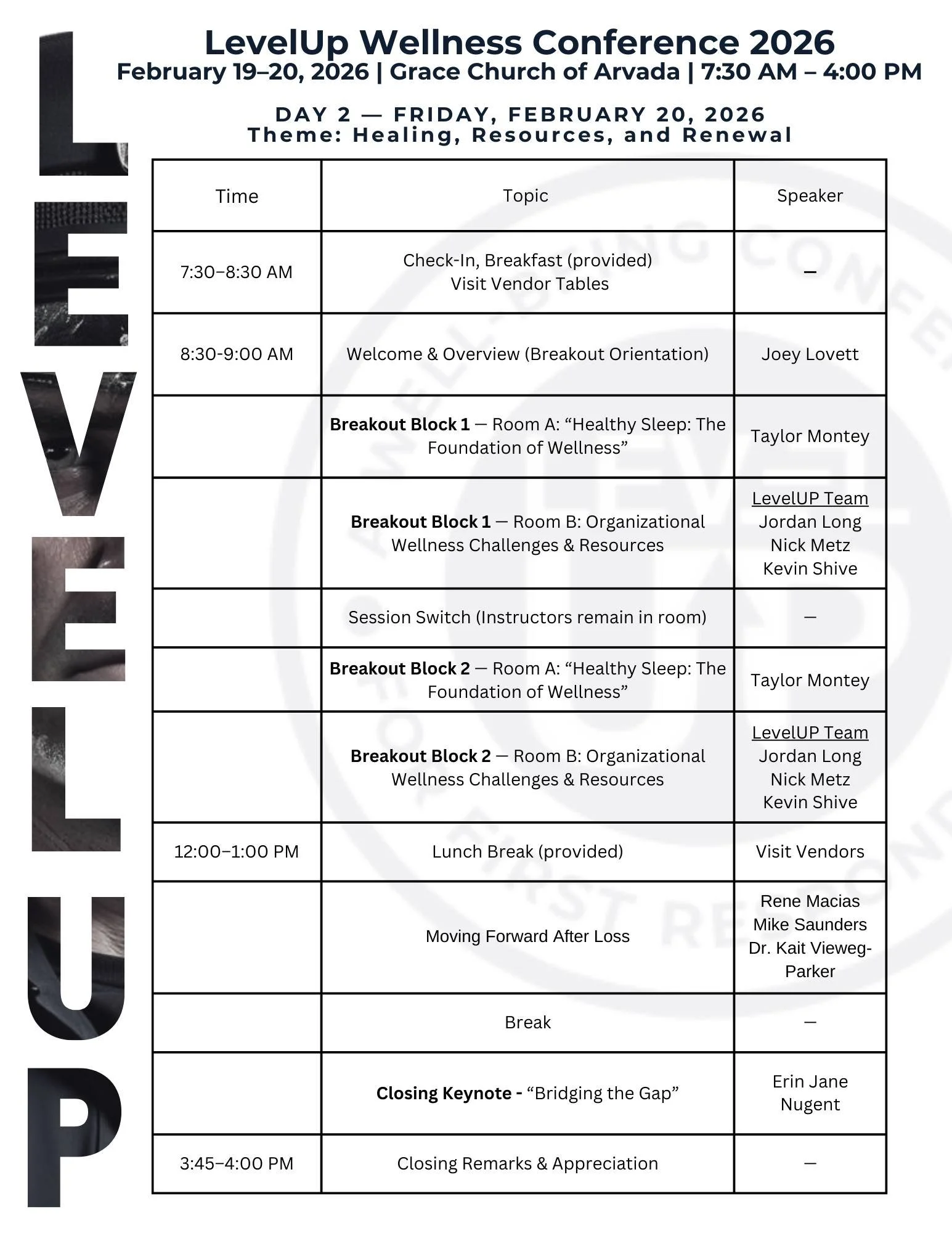 This year marks our fifth annual LevelUP! conference, dedicated to bringing responders together to connect, build resiliency, and emphasize the importance of mental health. Over the past four years, we have seen the incredible impact of these gatherings on our community, and we are excited to continue this journey with you.